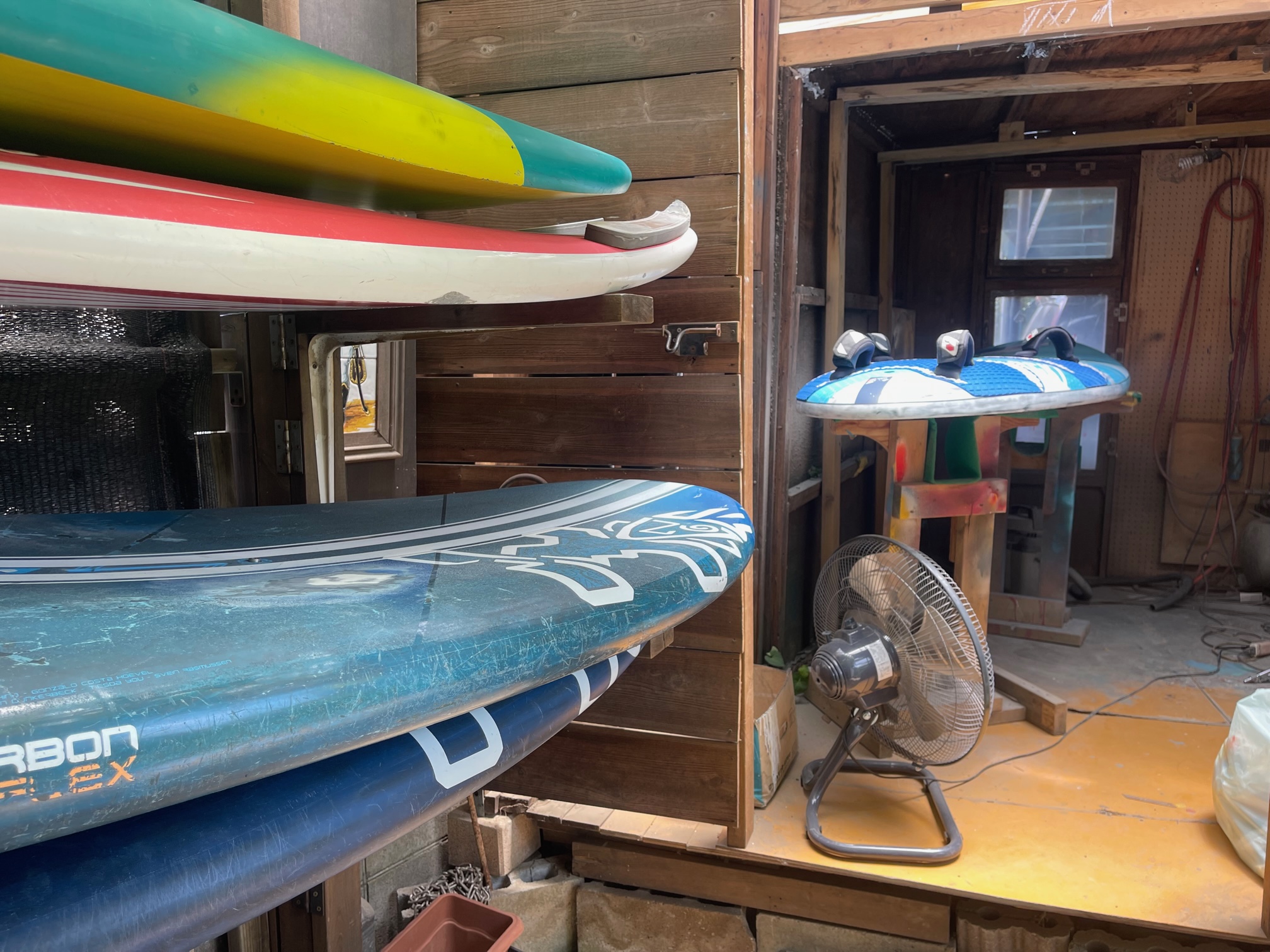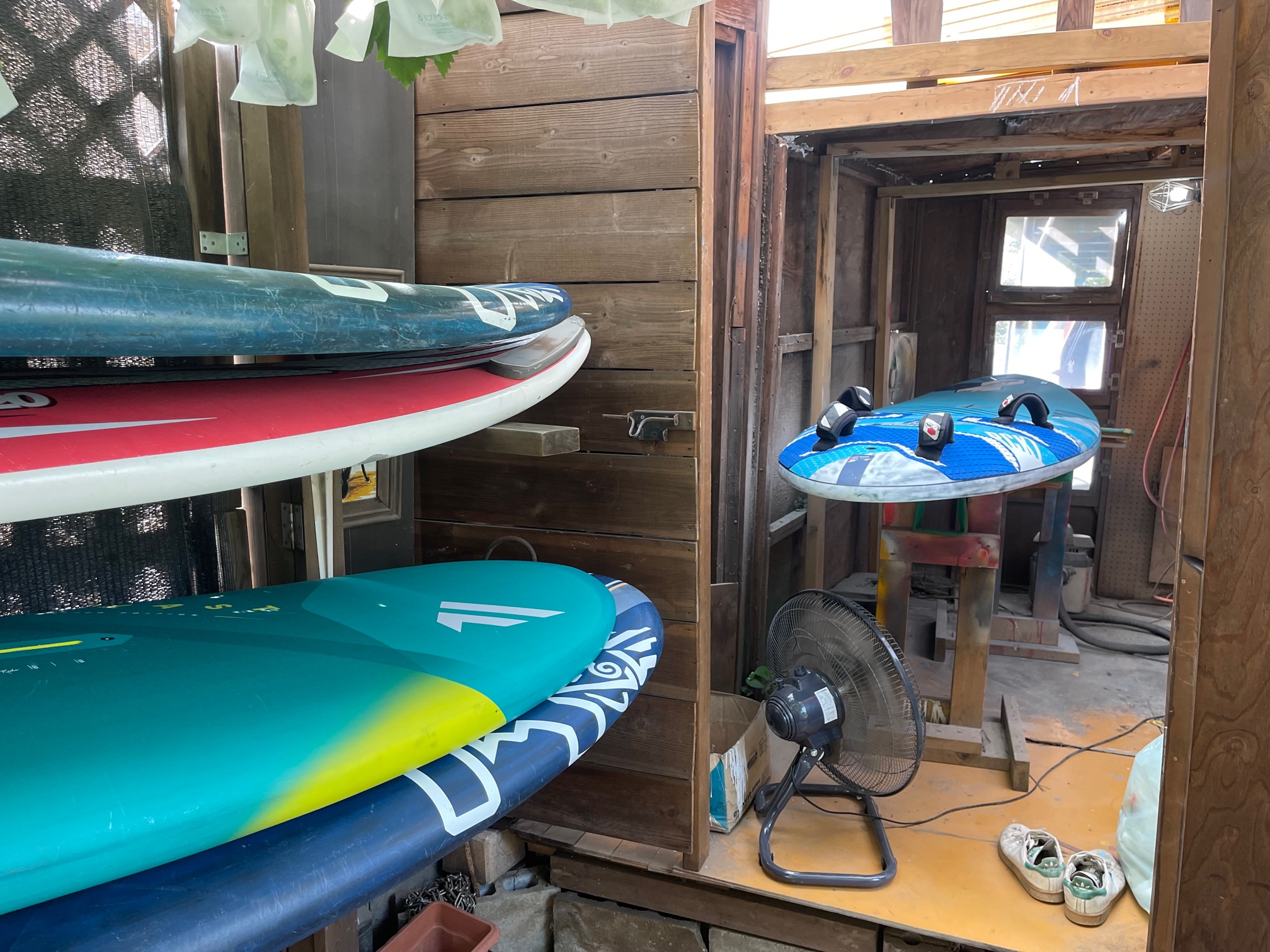 おはようございます! 今日は朝一の涼しい時間帯からボード修理!! 風は午後からですので、12時から検見川浜にてオープン致します!! iPhoneから送信